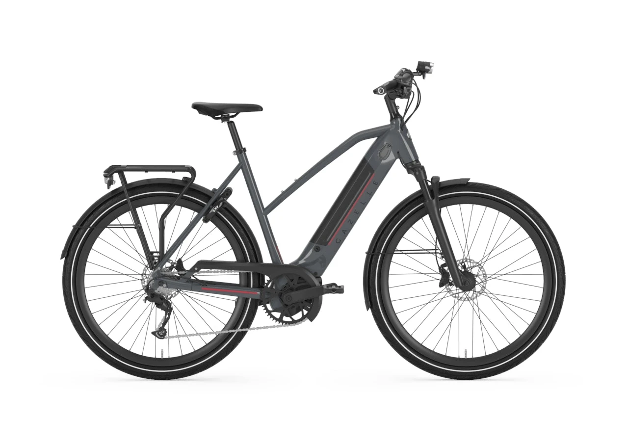 Arrive at work fast and relaxed with the Ultimate T10+ HMB. A dynamic contemporary design combined with the integrated motor and battery give the Gazelle Ultimate T10+ HMB a striking yet stylish presence. The aluminum frame is exceedingly stable, which translates into sporty handling and optimum agility. In addition to high-grade components, a high comfort level has been achieved by using puncture-resistant tires, ergonomic handlebar grips and a suspension front fork.