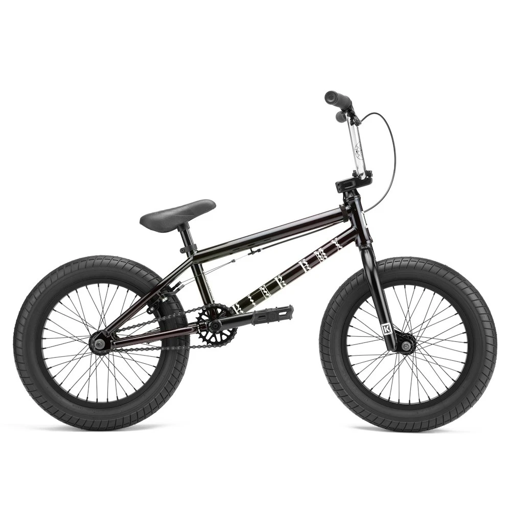 The Kink Carve 16” bike is the younger sibling of our Kicker 18”, and it ensures every age and every height rider can find a perfect fitting Kink bike. Kids are getting into BMX younger and younger, and we love it. The 2022 Carve comes in a great Gloss Iridescent Black color, which is complimented by black components throughout and chrome handlebars.