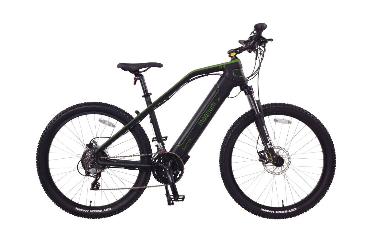 The Summit is the newest trail/mountain e-bike in the Magnum product line. It’s stand out features are the fully integrated battery for a sleek design and a range of accent colors span the top of the down tube. 48v, 500w power system with max speed of 25 MPH with pedal assist and 20 MPH throttle only. The sleek design and high-end components will turn heads.