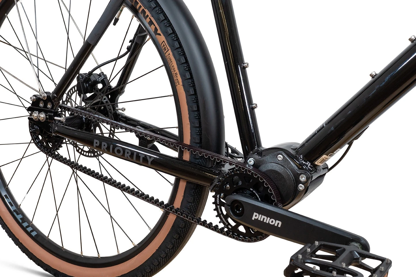 The Priority 600 features the 12-Speed Pinion Gearbox with the new DS2 rotary shifter, an automotive inspired transmission system created by two former Porsche transmission engineers in Stuttgart, Germany. Named after the bicycle’s massive 600% gear range that is equivalent to a traditional 30 speed bicycle, the gearbox offers unmatched versatility and dependability. There is no gear overlap, it’s sealed for year-round all-terrain riding, and is controlled by a single simple twist grip shifter. With the gearbox mounted in the center of the bicycle, it creates an ultra-balanced, nimble ride, all in a sealed, all-season, low maintenance package.
