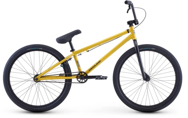 The Redline Asset 24 is where it begins to get real. Made for shredding the trails, skate park, and neighborhood streets, the Asset 24 features 7.5 inch handlebars to assist with front end lift-off. The Asset 24 includes Redline Monster pedals, Redline Monster integrated headset, 100% chromoly steel 3-piece cranks, and an aluminum fully sealed micro gear rear hub. The Redline Asset 24 comes equipped with Vee VTC Speedster 24 x 2.0 inch tires and a Monster fat padded pivotal saddle.