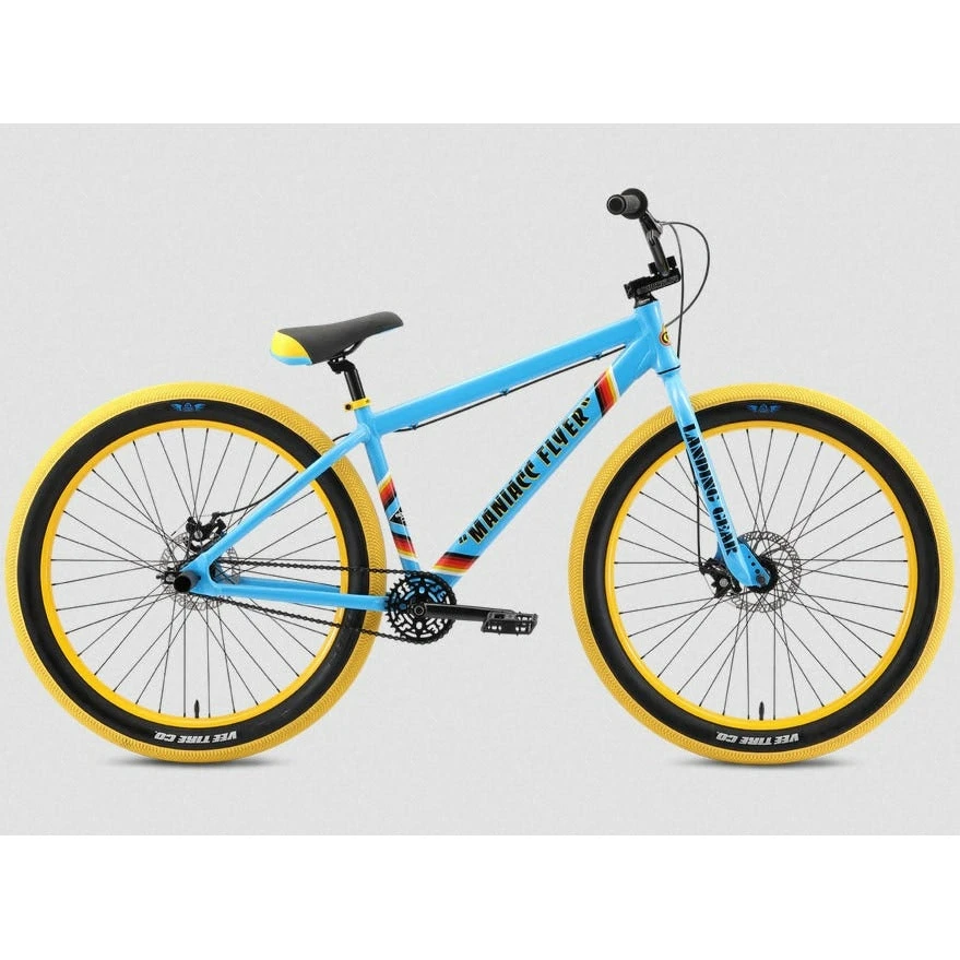 The 27.5″+ Maniacc Flyer is definitely an eye catcher this year! This beast of a bike is built around oversized 27.5″ x 3.0″ Vee x SE Speedster tires. The frame has been upgraded with an internal headset, mid-bottom bracket and a shorter rear end to make it easier to get that wheel up. Whether raising it up on the streets or hitting the dirt jumps or ramps, there’s no stopping the Maniacc Flyer.