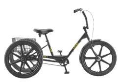 If you’ve got something heavy to move the Atlas Cargo Trike can transport it. Our famous trike frame is built with oversized heavy-duty high-tensile steel & equipped with a reinforced rear deck meant for the sole purpose of hauling loads up to 250 lbs. The Atlas Cargo Trike comes standard with tall handlebars, a smooth-riding saddle, heavy-gauge steel wheels with 12-gauge spokes & a rear band brake for extra stopping power. Its Safety Yellow glossy paint helps you be seen in any setting. Now let’s get to work!