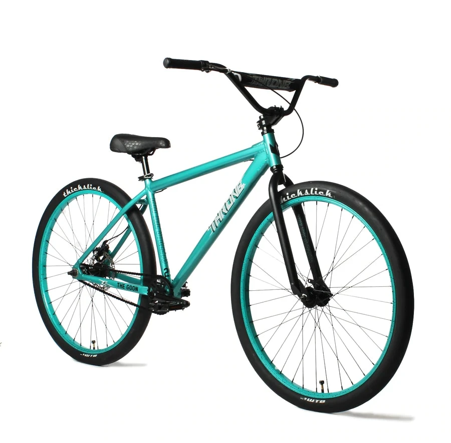 Throne Cycles presents the all new The Goon 29″ BMX in Jade Teal. Turn heads with this jewel, comes with the Throne Splatter design on the wheels and contrasting black hubs. To make this bike even more special its decals are made of 3M reflective material for so that you shine at night and be more safe! Plus a rear disc brake.